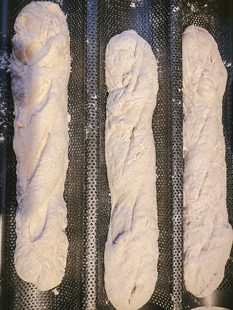 Iegriež maizē ar asu nazi svītras. Liek sakarsētā cepeškrāsnī 250 grādos uz 25 min, apakšā liekot trauku ar ūdeni – tas nodrošina kraukšķīgumu!