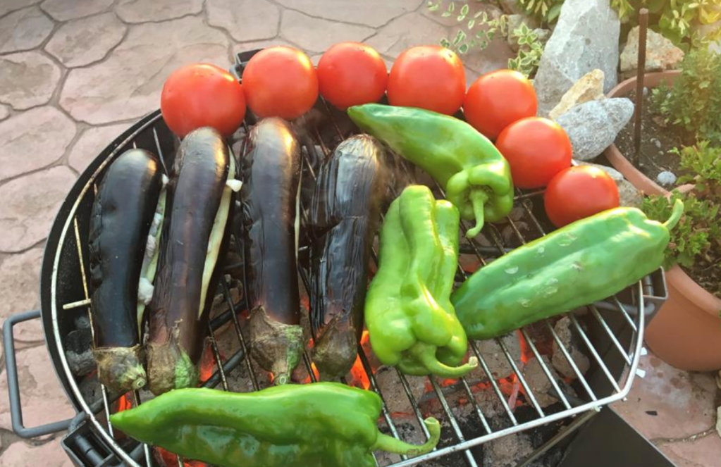 Uz grila apcep dārzeņus – baklažānu, tomātus, paprikas, var kādu aso piparu – apdedzina miziņu, to noņem nost, tad dārzeņus sasmalcina, piegriež kindzu vai pētersīļus, sagriež sīki saldo sīpolu, pievieno nedaudz olīveļļas vai nedaudz sviesta, sāli un pasniedz pie šašlika.