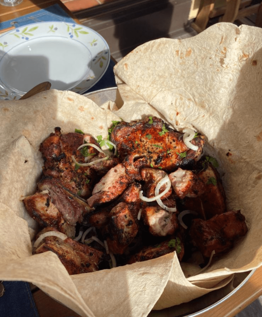 No rīta puses iegādājam gaļu, sagriežam sīpolus, paņemam līdzi dārzeņus un laižam zaļumos. Kamēr būsim galā pie cepšanas, gaļa jau būs gatava grilēšanai!