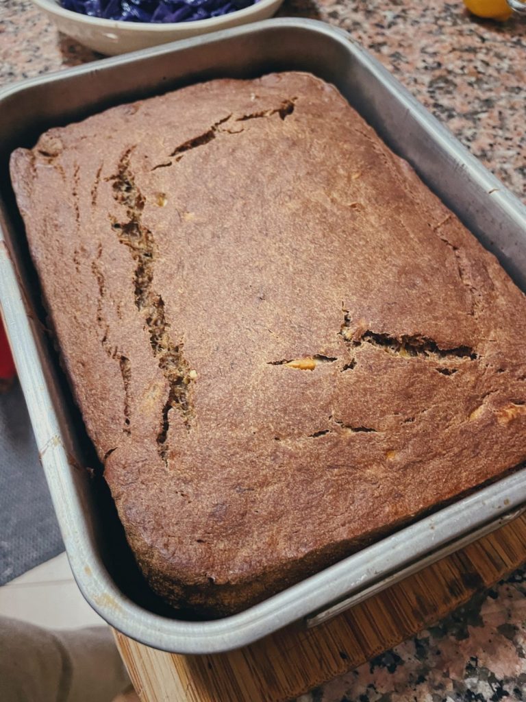 Lejiet mīklu pannā un cepiet 40-50 minūtes. Ik pa laikam pārbaudiet, vai banānmaize gatava.