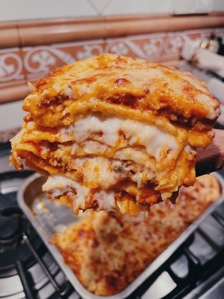 Cepiet cepeškrāsnī 30 minūtes vai līdz virsma ir brūna. Jūsu perfektā lazanja ir gatava!