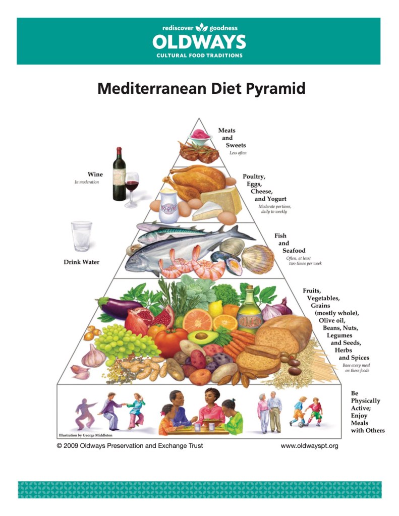 Vidusjūras diētas galvenais princips ir izmantot vietējus, sezonālus produktus, un pārsvarā uzturā lietot mājās gatavotus ēdienus, izslēdzot no ēdienkartes industriāli pārstrādātus produktus. Šeit būs mazs špikeris, kas palīdzēs izvēlēties produktus, savukārt Vidusjūras dzīvesveida piramīdā varēsi atrast, cik bieži ir ieteicams lietot noteiktos produktus.